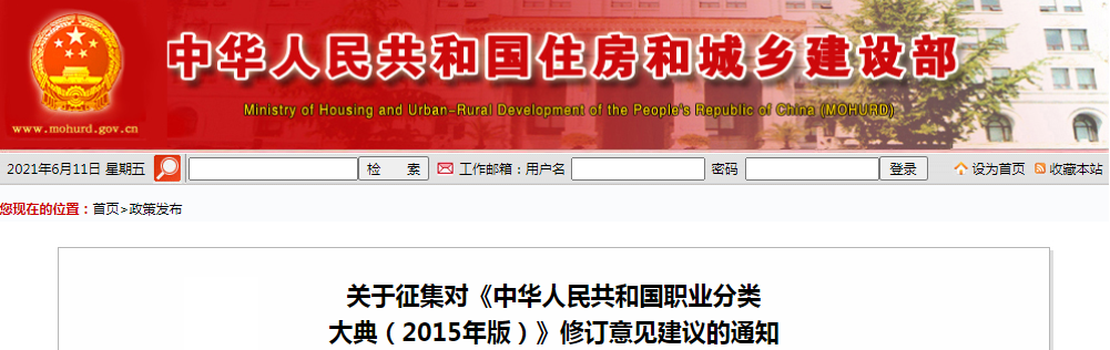 住房和城鄉(xiāng)建設(shè)部征集對《中華人民共和國職業(yè)分類大典(2015年版)》的修訂意見建議