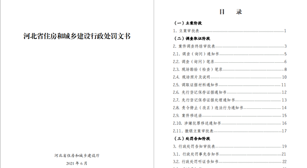 為適應行政處罰信息化建設,提升行政執(zhí)法效能,結合河北省住房城鄉(xiāng)建設綜合執(zhí)法信息管理平臺網(wǎng)上辦案系統(tǒng)操作需求,文書總體編排按照執(zhí)法辦案時間順序,以行政處罰案件的辦案流程為主線,在各個階段穿插相應的執(zhí)法文書,實現(xiàn)執(zhí)法全過程留痕和可回溯管理,充分保障了行政執(zhí)法公示制度、執(zhí)法全過程記錄制度、重大執(zhí)法決定法制審核制度的貫徹落實。(趙子闊 陳鵬)